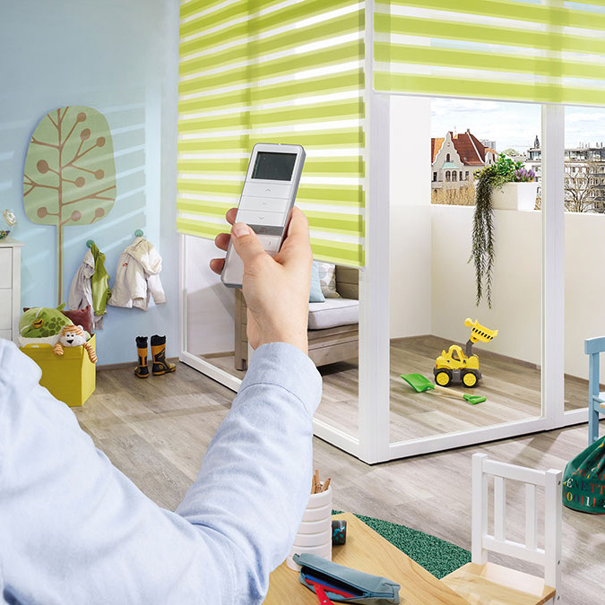 So geht automatisierter Sonnenschutz heute: maximaler Bedienkomfort ohne lästigen Kabelsalat oder Aufwand für Elektroinstallation. Der integrierte Lithium-Ionen-Akku im erfal eACCU sorgt dafür, dass Sie Ihre erfal Sonnenschutzanlagen monatelang fernsteuern können – je nach Bedarf mit einer 1-Kanal- oder 15-Kanal-Fernbedienung oder einer mobilen App. Dank eines Funklichtsensors können auch automatisierte Abläufe programmiert werden. Da die Funkkommunikation in beide Richtungen erfolgt, können die eACCUS auch in Smart Home Applikationen eingebunden werden. Sie können eACCU aus dem Hause vielseitig verwenden, zum Beispiel für Rollos und Doppelrollos, Plissees und Wabenplissees sowie Jalousien.